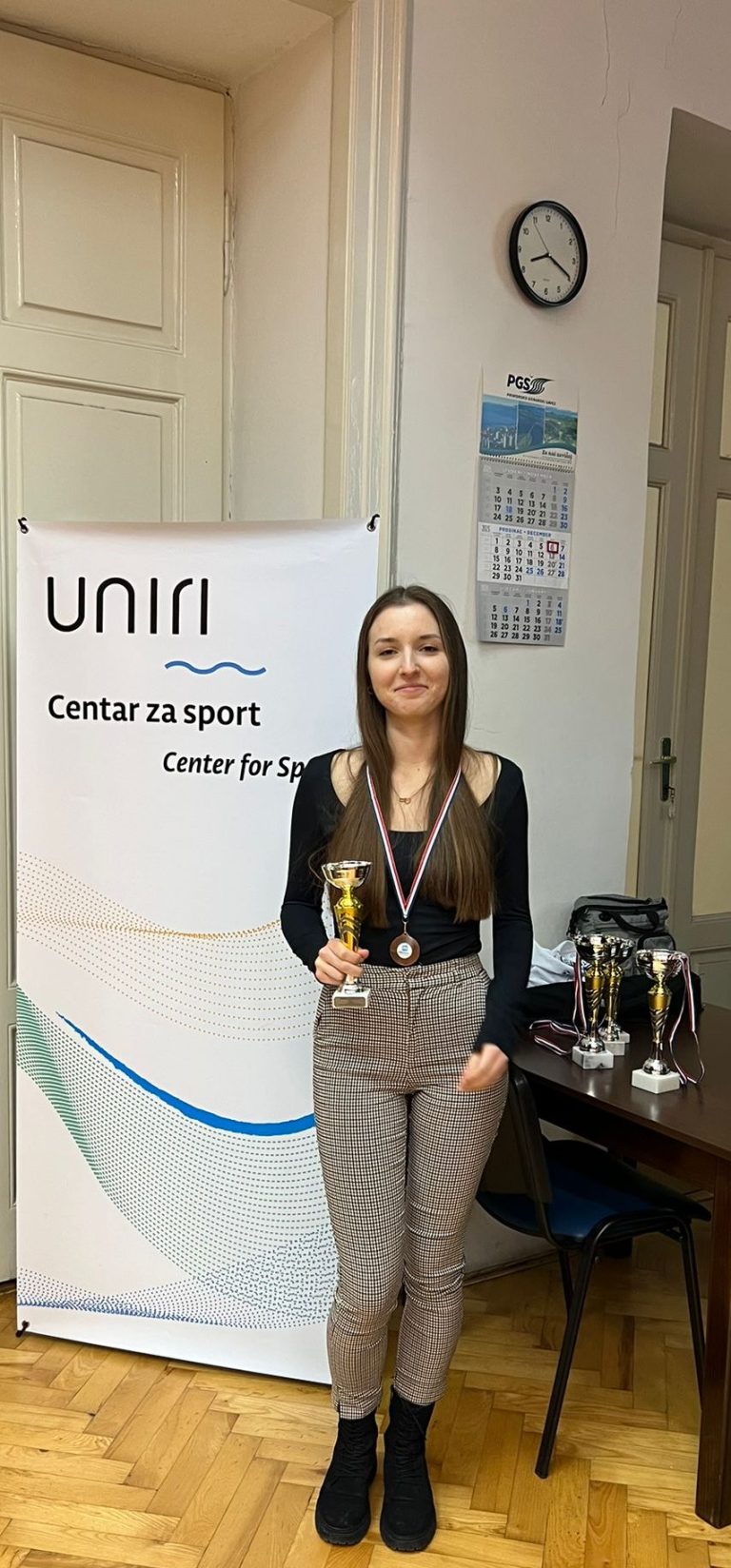 Studentica Fakulteta Kristina Kos osvojila je 3. mjesto na ovotjednom prvenstvu Sveučilišta u Rijeci u šahu u kategoriji studentica. S osvojena 4 boda iz 7 susreta zauzela je ukupno 9. mjesto što je bilo dovoljno za brončanu medalju među studenticama.