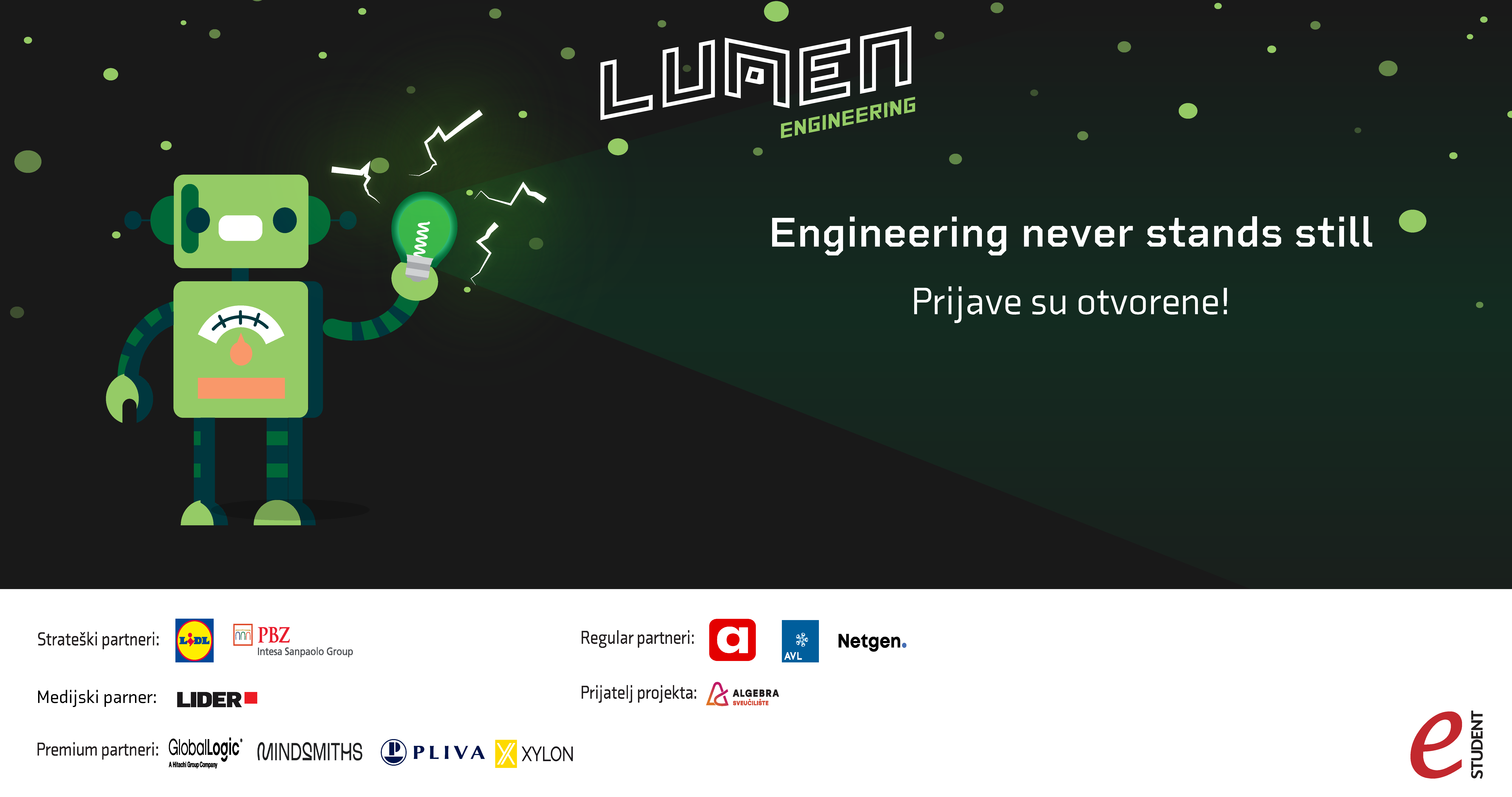 U sklopu natjecanja LUMEN, studentska udruga eSTUDENT i ove godine organizira LUMEN Engineering – jedinstveno edukativno natjecanje na polju elektrotehnike, strojarstva, mehatronike i robotike koje okuplja studente STEM-a. Prijave za sudjelovanje službeno su otvorene.