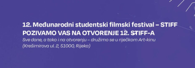 Srdačno vas pozivamo na svečano otvorenje 12. izdanja Međunarodnog studentskog filmskog festivala STIFF, koje će se održati u srijedu, 27. studenog u Art-kinu.