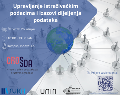 Sveučilište u Rijeci, u suradnji s Centrom za otvorenu znanost Sveučilišne knjižnice Rijeka i Knjižnicom Filozofskog fakulteta, organizira radionicu “Upravljanje istraživačkim podacima i izazovi dijeljenja podataka” koja će se održati u četvrtak 26. ožujka s početkom u 10:00 sati u Inovacijskom laboratoriju na Kampusu InnovaLab.