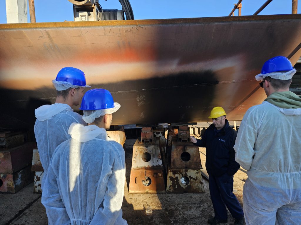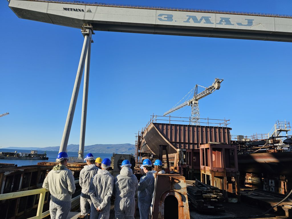 U sklopu kolegija Tehnologija brodogradnje, studenti treće godine prijediplomskog sveučilišnog studija Brodogradnje imali su priliku sudjelovati u terenskoj nastavi održanoj u brodogradilištu “3. Maj” u Rijeci. Ova posjeta omogućila je studentima neposredan uvid u stvarne proizvodne procese, tehnologije i organizaciju rada u realnom brodogradilištu, čime se teorijsko znanje stečeno na fakultetu povezalo s praktičnim iskustvom iz industrije. Terenska nastava predstavlja neprocjenjiv oblik obrazovanja budućih inženjera jer omogućuje direktan kontakt s realnim radnim okruženjem, upoznavanje s aktualnim tehnološkim izazovima i rješenjima, razvijanje stručnih kompetencija i profesionalne odgovornosti, te motivaciju za daljnje usavršavanje i karijerni razvoj.